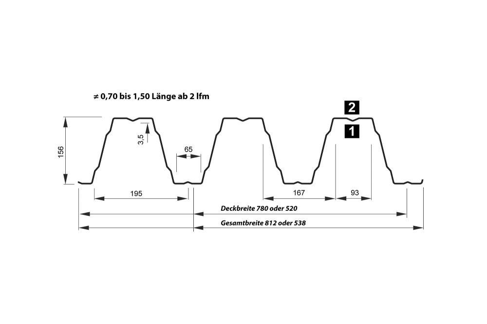 ≠ 0,70 bis 1,50 Länge ab 2lfm