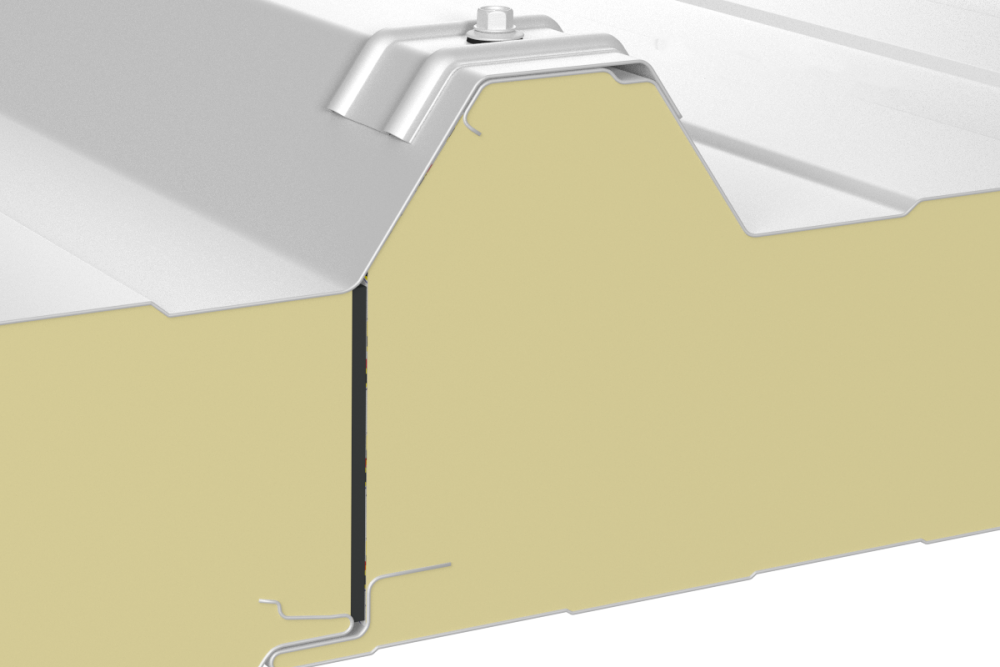Die Außenverkleidung der Dachprofile wurde so geformt (Hauptfalte 40 mm hoch), dass die Tragfähigkeit erhöht wird, was üblicherweise für Dachprofile mit einer Höhe der Hauptfalte von 45 mm erreicht wird.