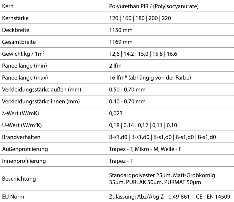 Sandwichelemente Wand PIR-CH
