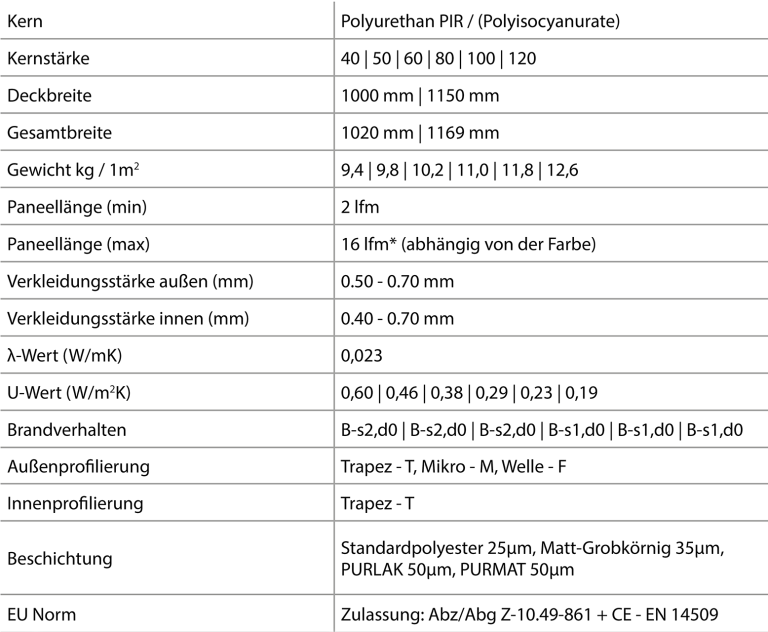 Sandwichelemente Wand PIR-ST